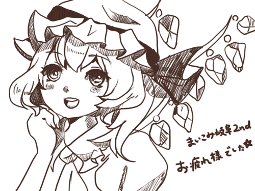 せっかく参加したので何か残そうと、後ろにあった落書きコーナーでささっとフランちゃんを描いておきました(^ω^)