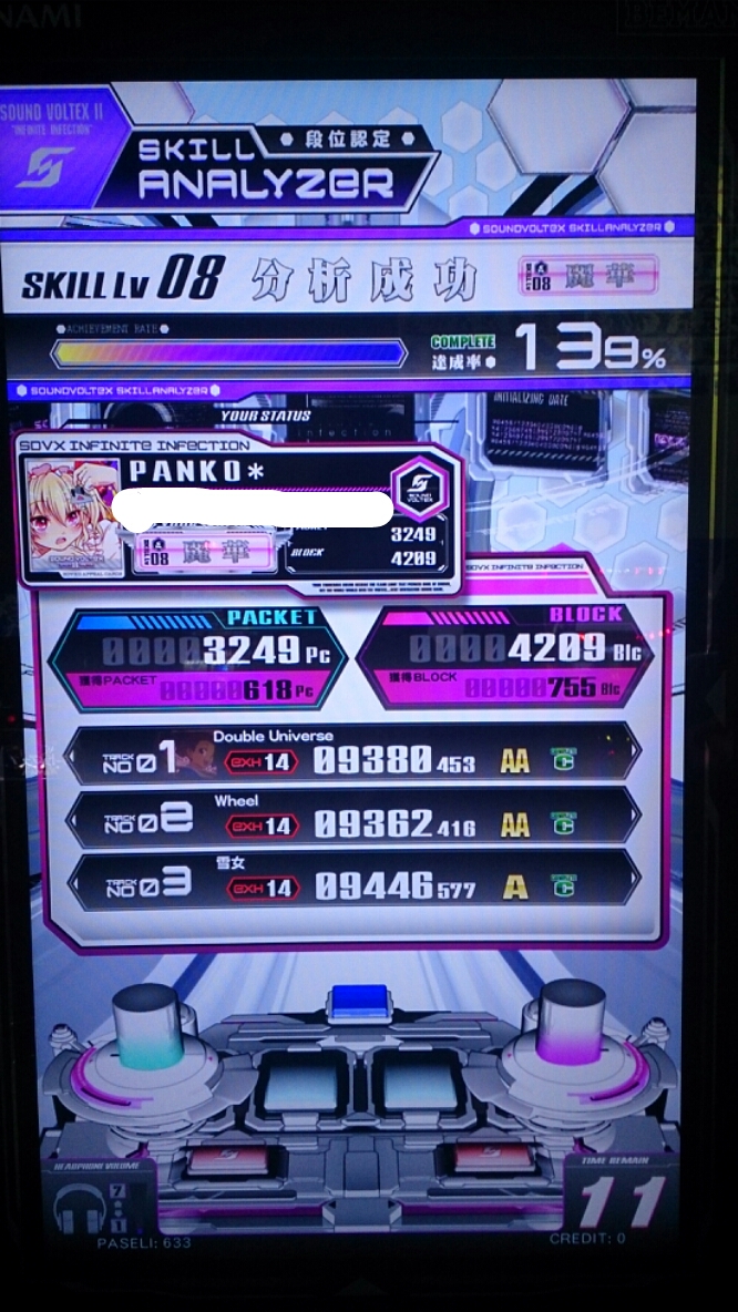 最近サウンドボルテックスの、スキルアナライザー(サウンドボルテックスの昇段試験のようなもの) の内容が新しくなったので、ずーーーっと挑戦していたのですが、よぉぉぉぉぉぉやく!麗華が!とれました!!!( ´°̥̥̥̥̥̥̥̥ω°̥̥̥̥̥̥̥̥`)